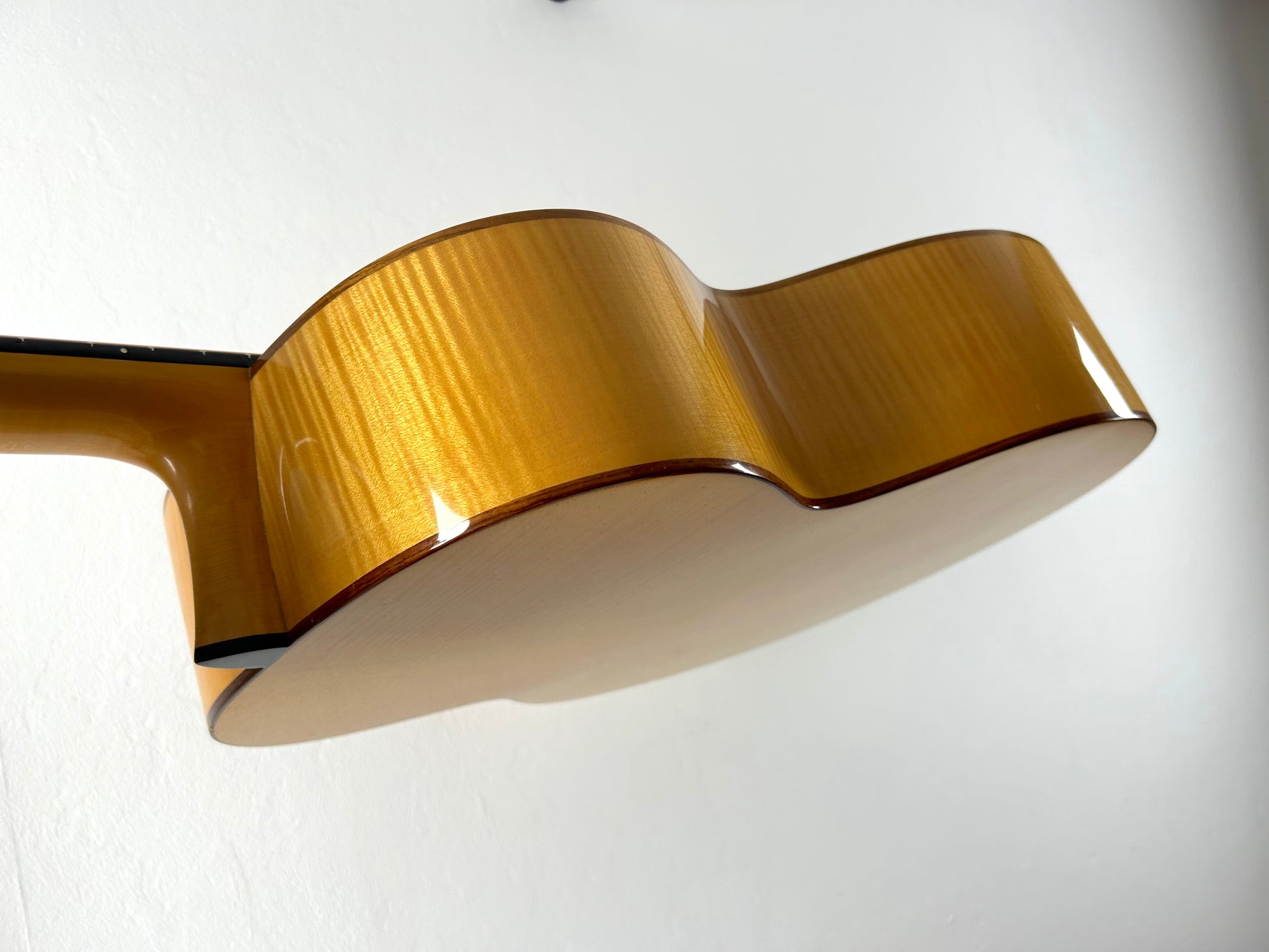 Eine von schönsten Albert&Müller Gitarre, die ich bis jetzt spielen durfte mit einem traumhaften Klang! Viel wärme in dem Klang mit dem klaren Ahorn-Charakter, sehr gut artikulierten Bässen und kristallklaren Höhen.