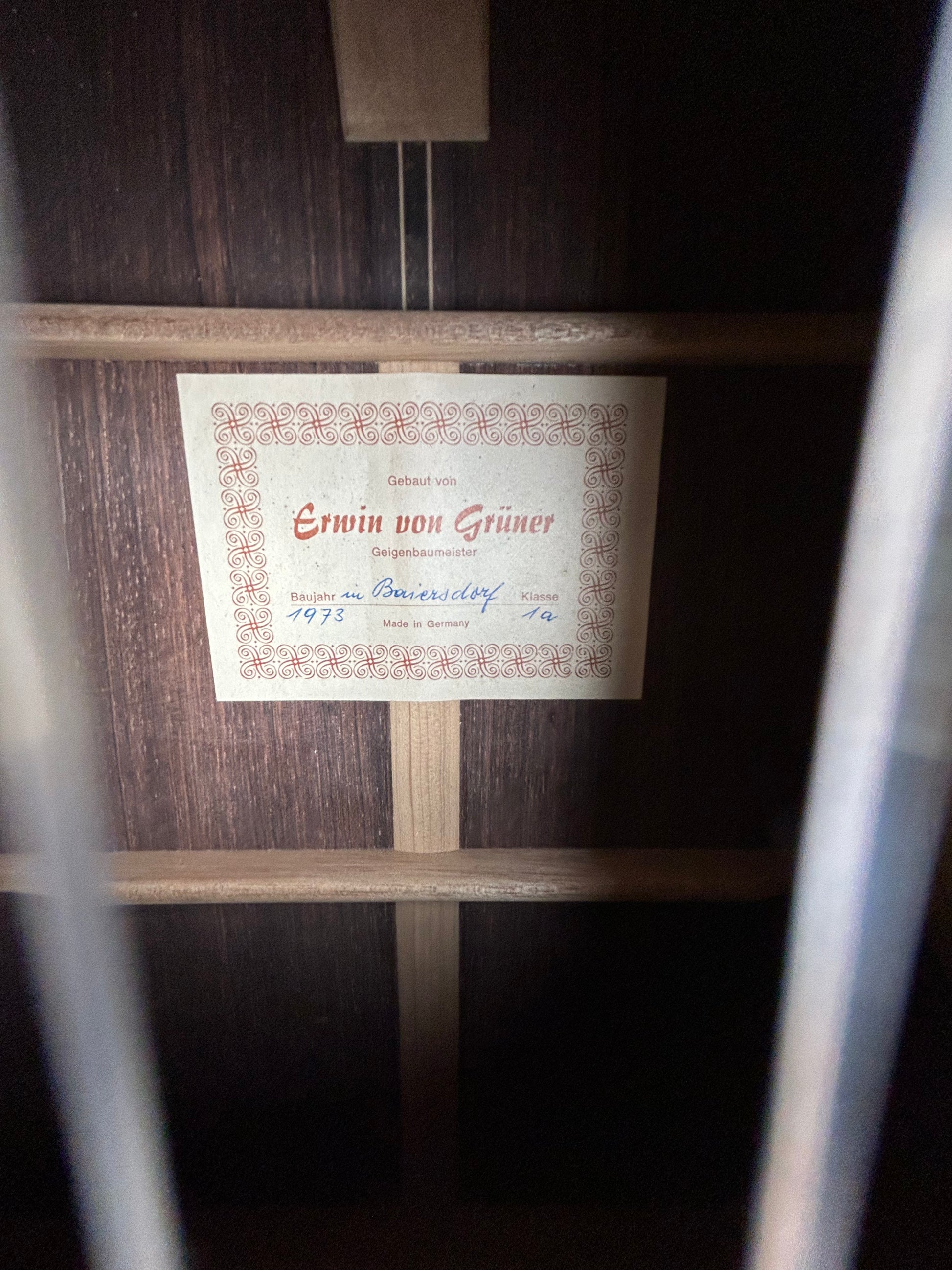 Erwin von Grüner (1925-2001) war einer der renommiertesten deutschen Gitarrenbauer. Geboren in Teplitz und aufgewachsen in einer Familie von Instrumentenbauern, gründete er 1954 seine eigene Werkstatt in Baiersdorf. Grüner ist sowohl für seine hervorragenden Repliken bekannter Gitarrenbauer wie Torres als auch für seine innovativen Arbeiten bekannt, darunter das einzigartige "Doppelresonanzsystem".