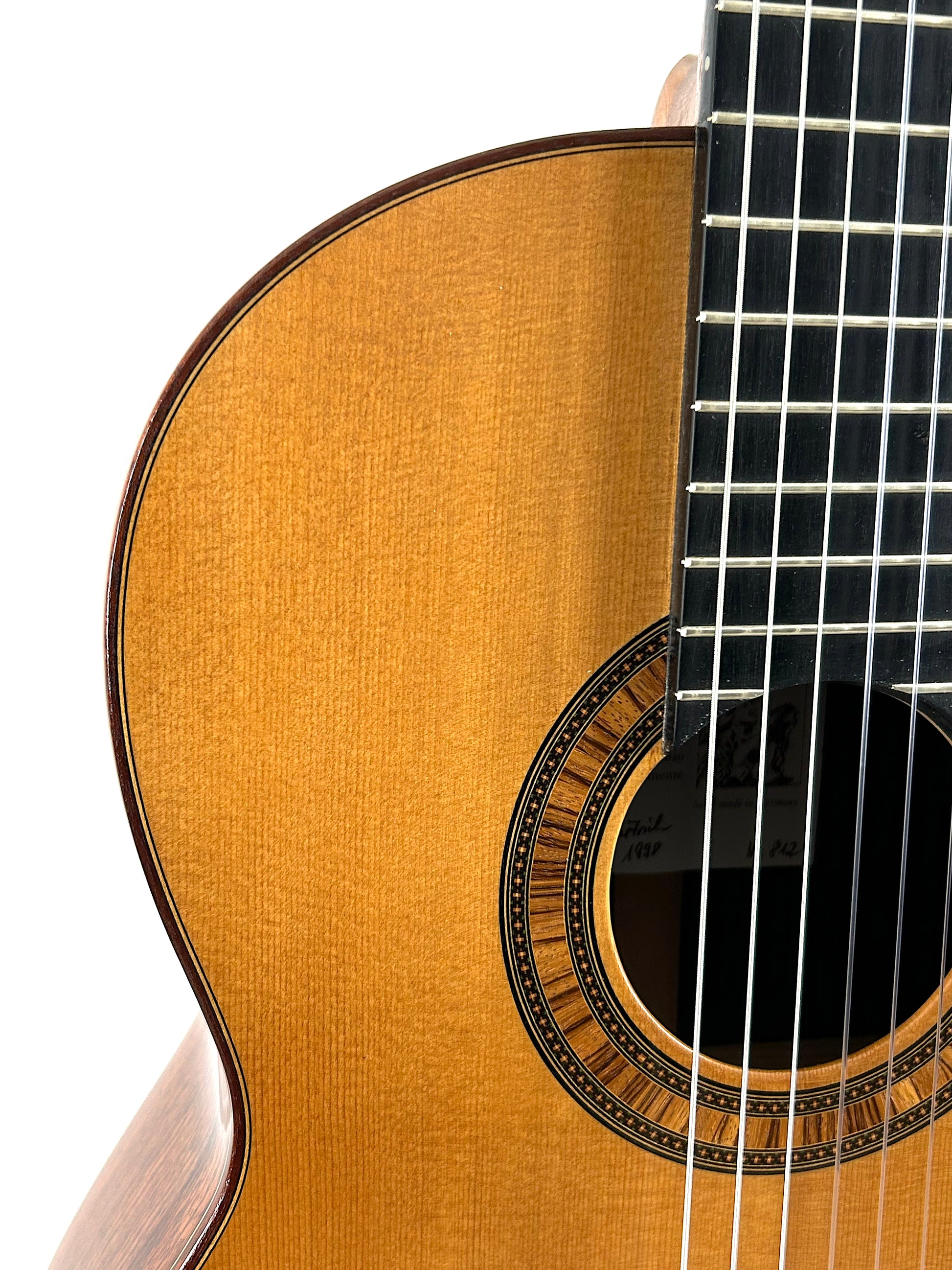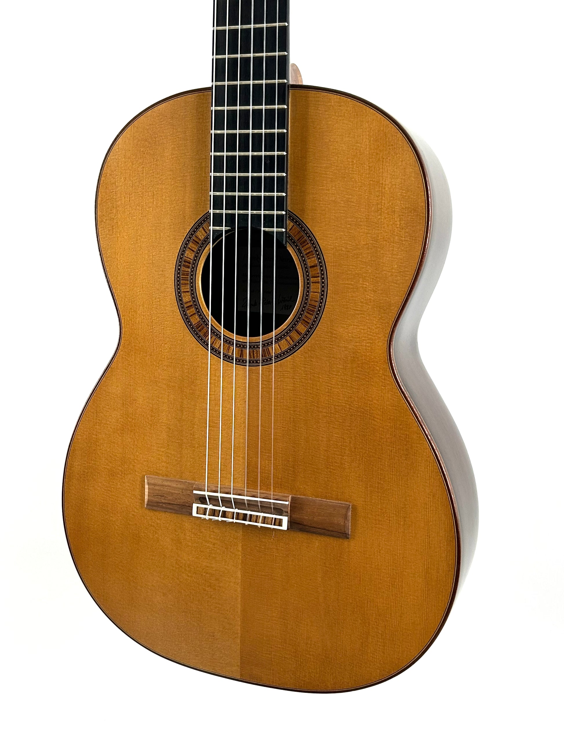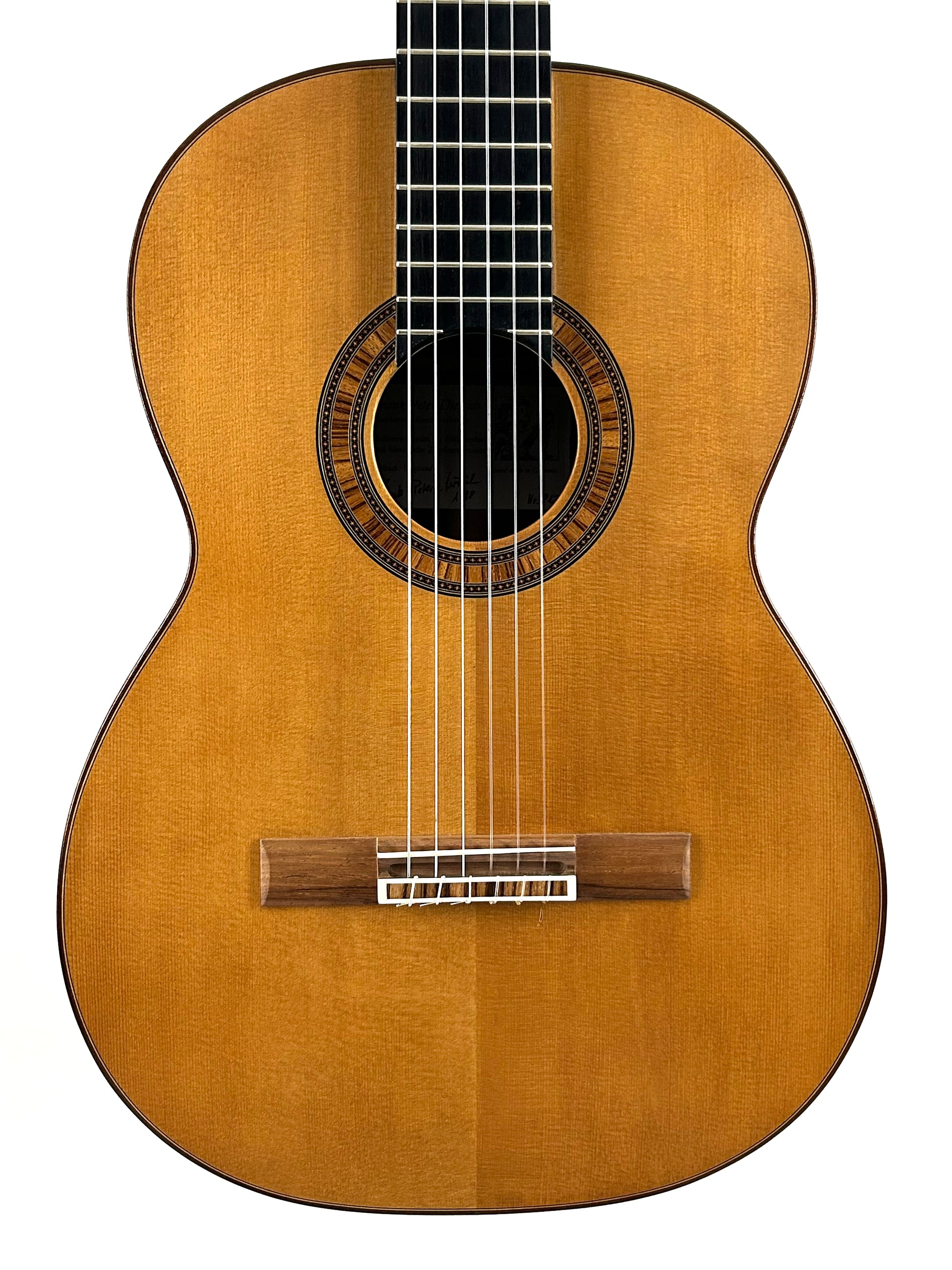 Die Gitarre überzeugt mit einem vollen, tragenden Klangbild, kräftigem Bass, warmen Mitten und klaren, feinen Höhen. Ansprache und Dynamikverhalten sind hervorragend. Das Instrument ist vollmassiv mit Fichtendecke und Palisanderzargen/-boden, handwerklich hochwertig gebaut.