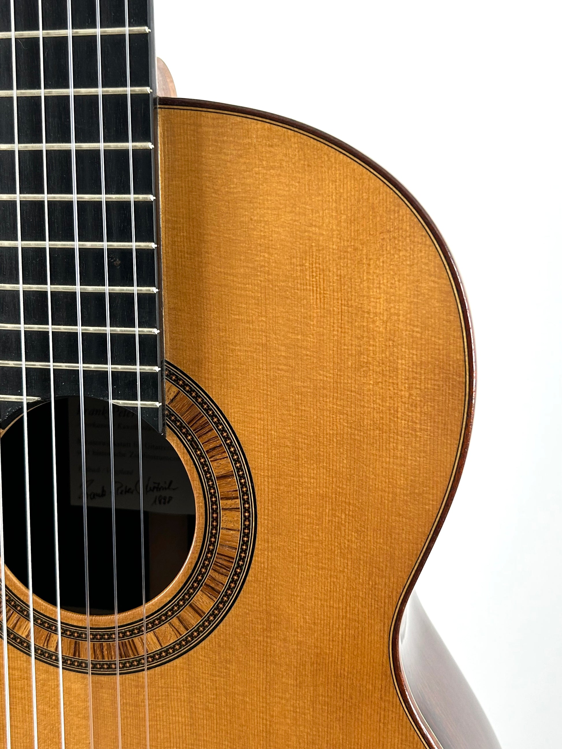 Zum Verkauf steht eine Konzertgitarre des renommierten deutschen Gitarrenbauers Frank-Peter Dietrich, Modell Tosca 10, gebaut im Jahr 1998, Seriennummer 812.